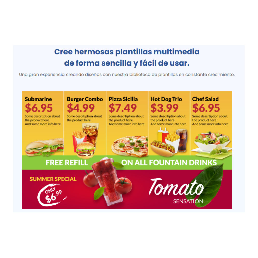 La plataforma de DigiSign ofrece numerosas ventajas que revolucionan la forma en que se comparte y presenta la información y publicidad de su empresa o negocio. Con plantillas de impacto y contenido dinámico, DigiSign cautiva a su audiencia y mejora la comunicación.