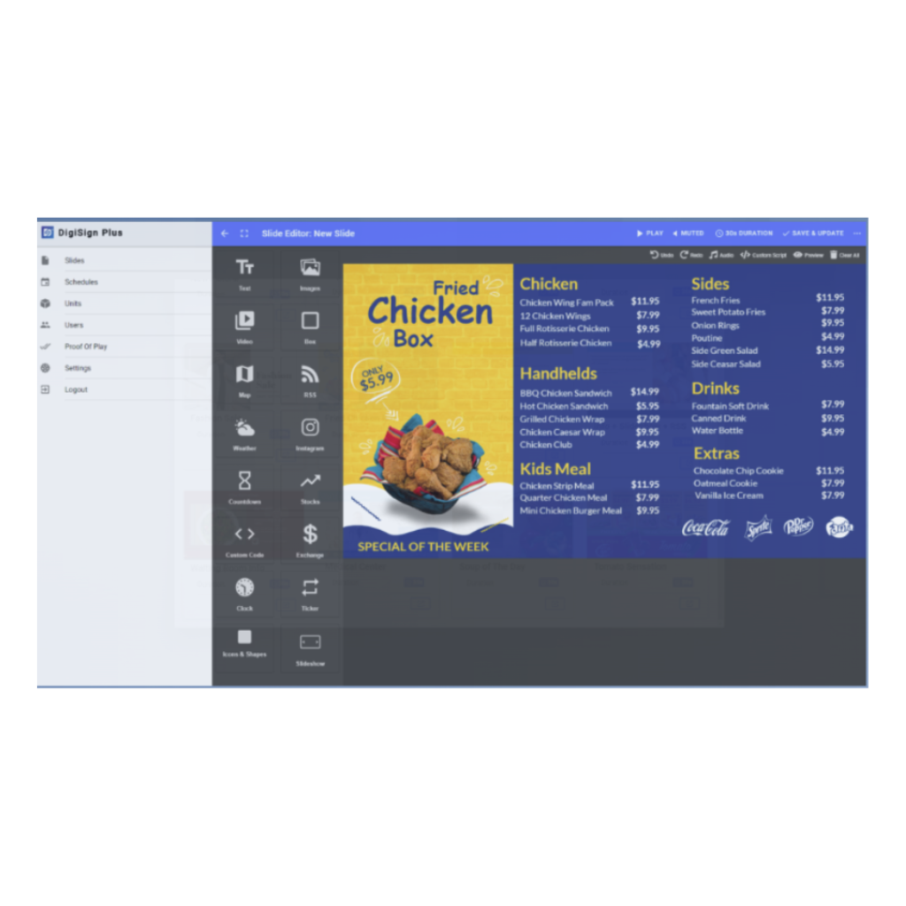 La plataforma es muy sencilla e intuitiva de utilizar, tan sencilla que le permite arrastrar y soltar recursos o crear e incrustar su propio código. DigiSign le permite agregar HTML, CSS o JavaScript personalizados. También puede crear y exportar una página web (HTML/CSS/JavaScript) fácilmente arrastrando y soltando sus elementos. Así mismo, la seguridad es un pilar muy importante dentro del ecosistema de cartelería digital de Muxlab, es por eso que solo se puede acceder a las unidades a través de aplicaciones DigiSign CMS autorizadas y el usuario debe iniciar sesión. Los reproductores pueden funcionar con o sin Internet para admitir incluso las configuraciones más seguras.